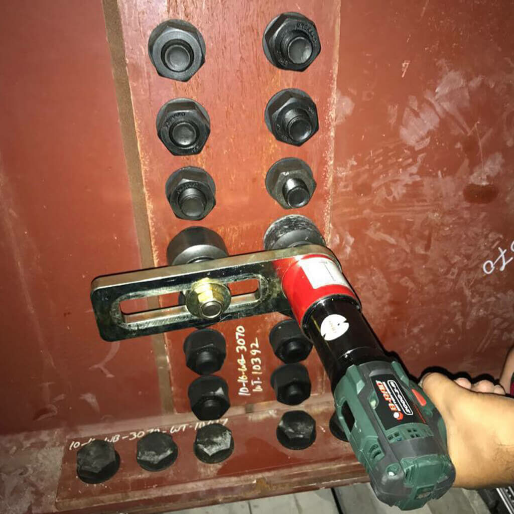 Met de B-RAD EXT-R (verlengde versie van de B-RAD accu-momentsleutel) kunnen bouten op voethoogte zeer gemakkelijk op moment worden gezet. Zonder trillingen, uitlaatgassen en met zeer lage geluidsproductie (slechts 65 dB), waardoor bijvoorbeeld ook ’s nachts kan worden doorgewerkt.