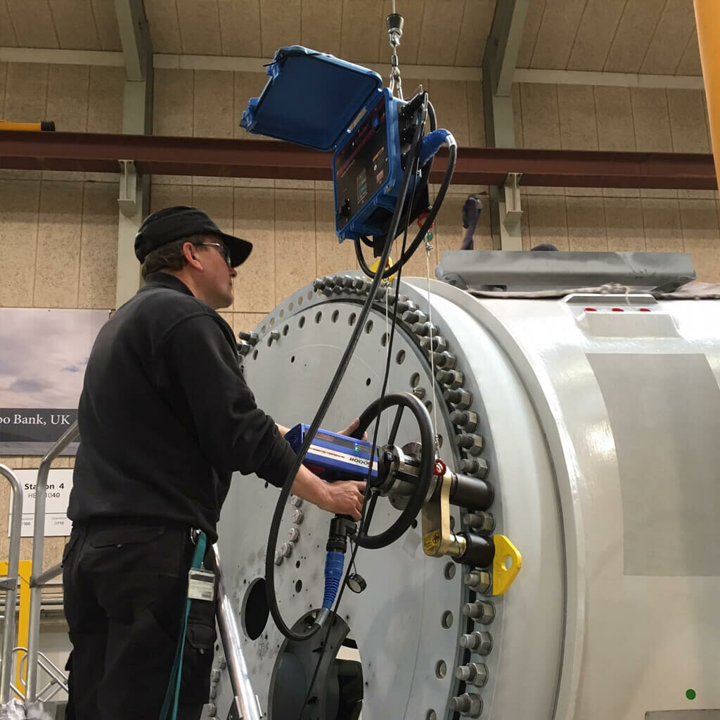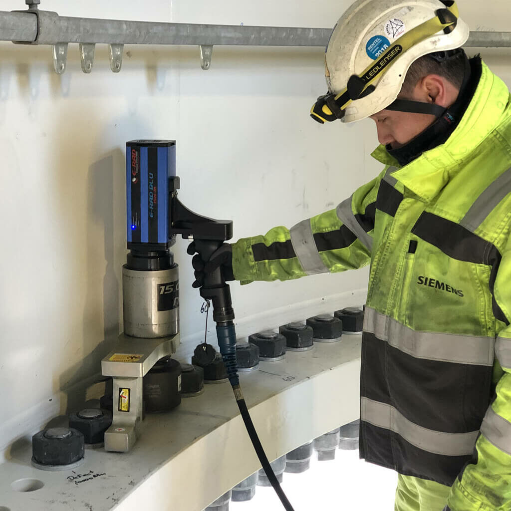 Een hele flensverbinding op moment zetten is een zware klus. Met de Torque Tool Flange Roller wordt het gewicht van de E-RAD opgevangen en beweegt deze met een spindel op en neer. Door de industriële wielen is de horizontale verplaatsing ook eenvoudig.